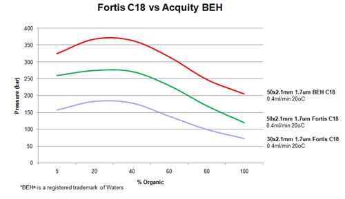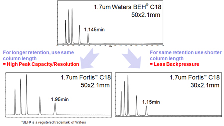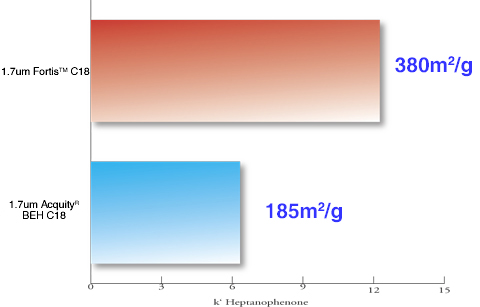 Since 1.7um Fortis columns are the same surface area as their 3um and 5um counterparts, several advantages occur over lower surface area materials: